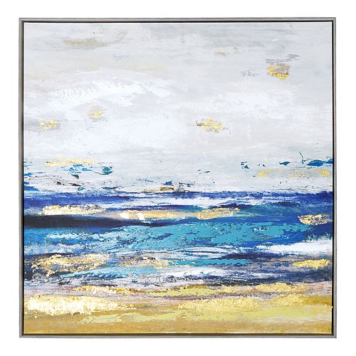 Shop Metallic Serenity Shores Printed Canvas Wall Art Blue Overstock 29118932