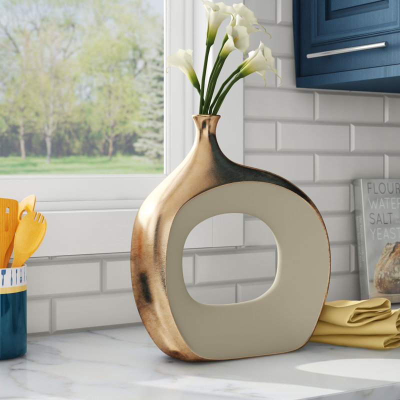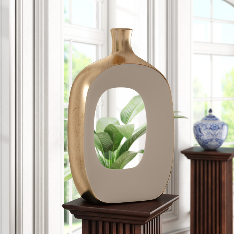Orren Ellis Saltzman Small Metallic Floor Vase Reviews Wayfair