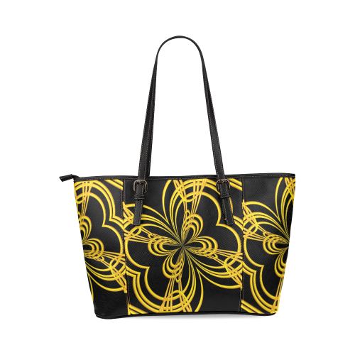 Metallic Gold On Black Abstract Warp Leather Tote Bag Large