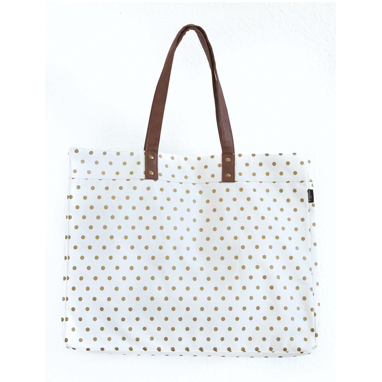Maika Metallic Gold Dots Canvas Carryall Tote James Anthony