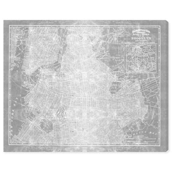 Shop Oliver Gal Brooklyn Map 1891 Inverted Silver Metallic Maps And Flags Wall Art Canvas Print Gray Black On Sale Overstock 28585280