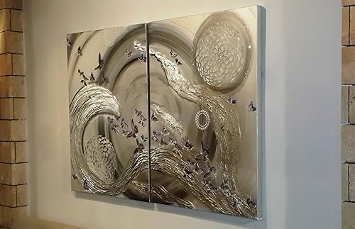 Amazon Com Large Wall Art Metallic Abstract Purple And Silver Butterfly Oil Painting Ready To Hang Multi Panel Oil Paint Contemporary Original Artwork Handmade