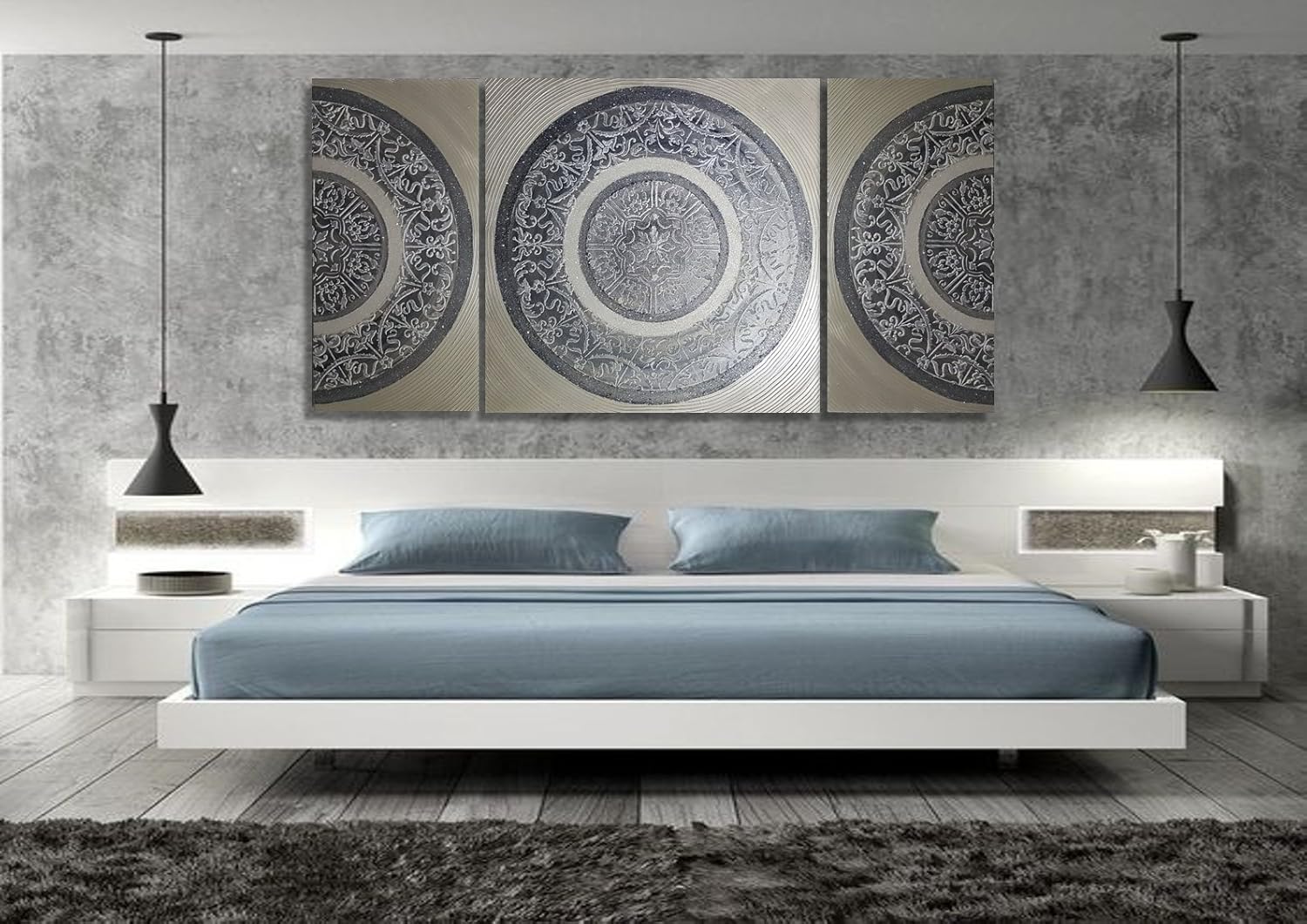Amazon Com Original Abstract Metallic Silver Pearl Oil Painting 3 Piece Circles Modern Wall Art Large Wall Painting On Canvas Huge House Artwork Handmade