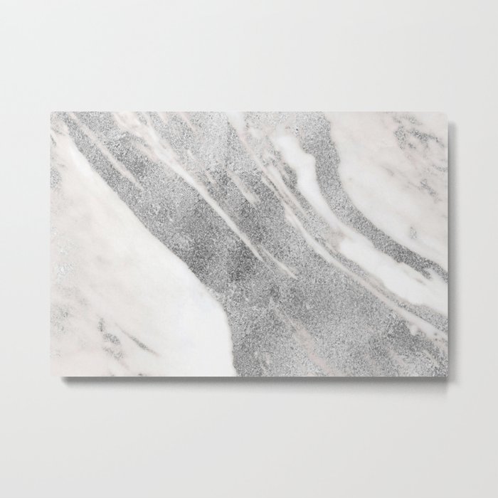 Marble Silver Glitter On White Metallic Marble Pattern Metal
