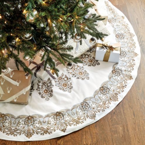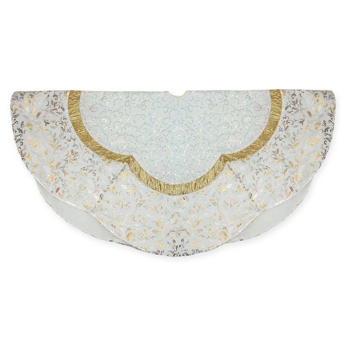 Shop 48 White And Gold Two Toned Flourish Christmas Tree Skirt