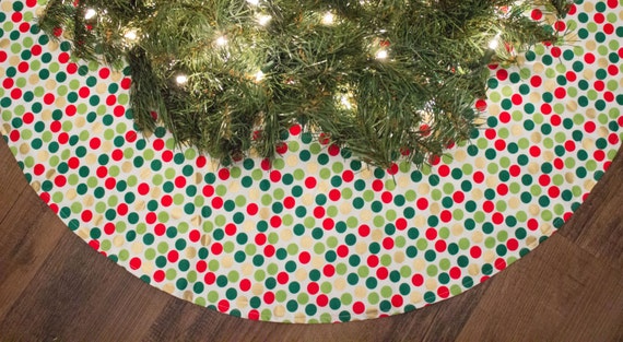 Christmas Tree Skirt Red Metallic God Green Dots Holiday Etsy