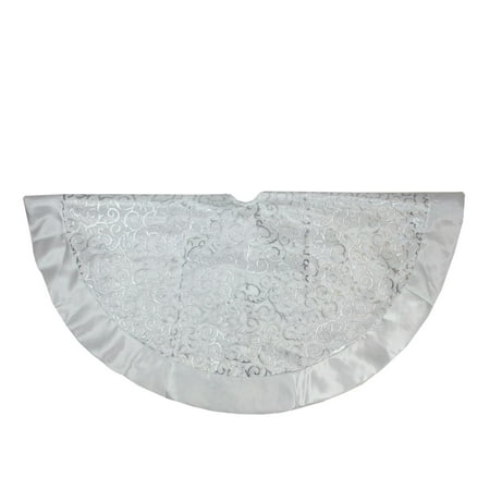 48 Silver Metallic Filigree Organza Christmas Tree Skirt With