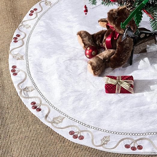 48 Inch Velvet Tree Skirt With Faux Fur Border Applique And