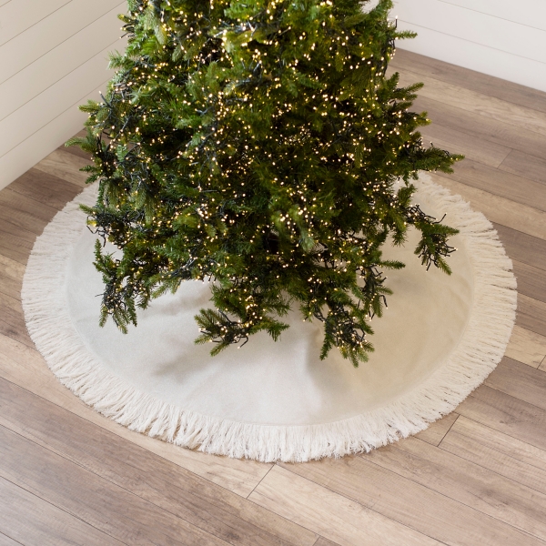 Cream Metallic Frayed Trim Tree Skirt Kirklands