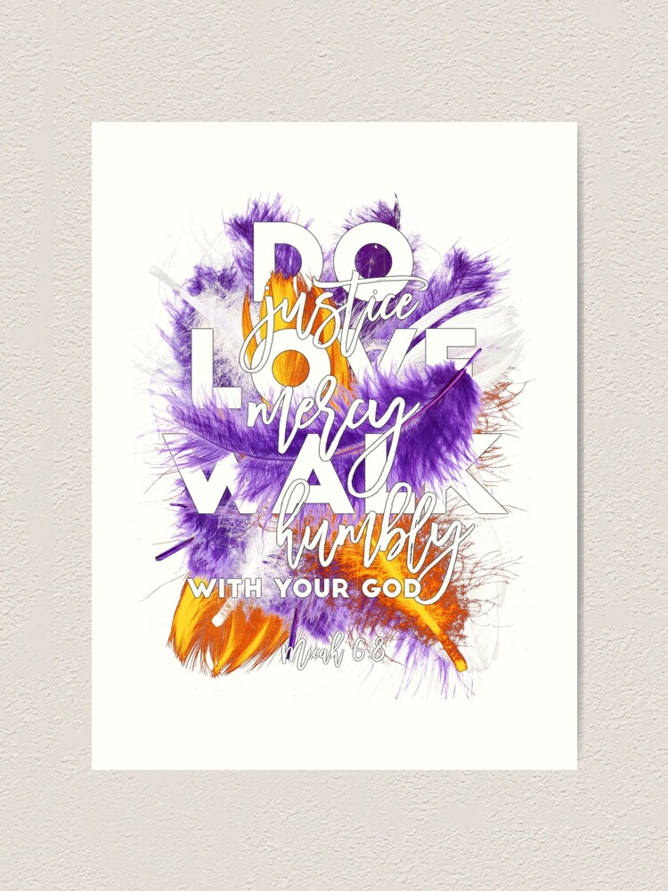 Bible Verse Micah 6 8 Purple Orange And White Feathers Art Print