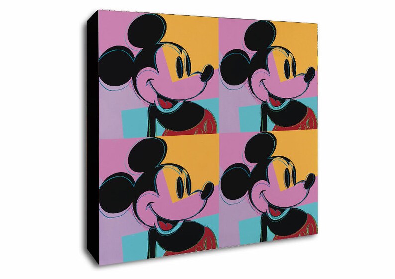 Free shipping by amazon. Favourite add to andy warhol mickey mouse quad poster print wall art canvas posterboyau. Snatch mickey by inked ikons canvas art arrives ready to hang with hanging accessories included and no additional framing required. Handmade alec graffiti mickey mouse paintings pop art canvas wall art street art urban art on canvas wall pictures for living room bedroom stretched and framed 32x32 50 out of 5 stars 3.
