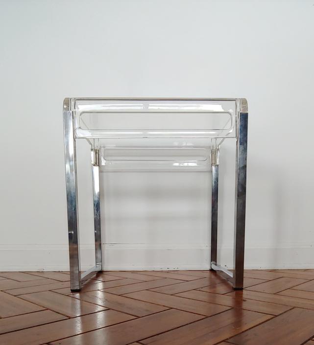 Mid Century Modern Chrome And Lucite Side Accent Table By