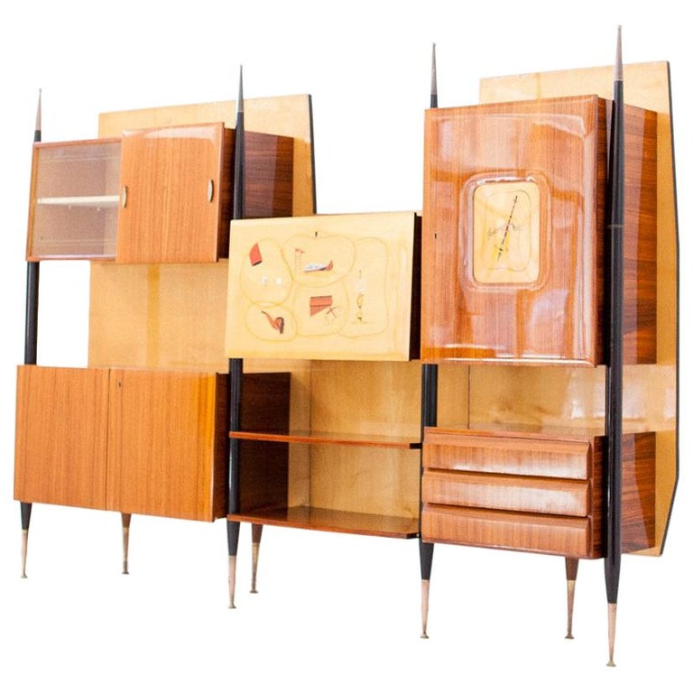 Italian Mid Century Modern Bookshelf With Bar 1950s At 1stdibs