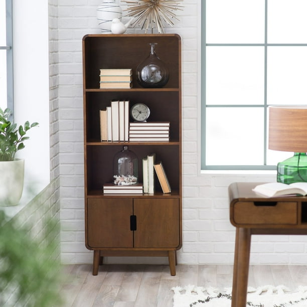 Belham Living Darby Mid Century Modern Bookcase Walnut Walmart