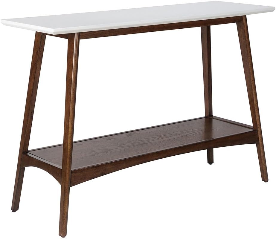 Amazon Com Mid Century Modern Console Sofa Entryway Table In White And Pecan Wood Finish Kitchen Dining