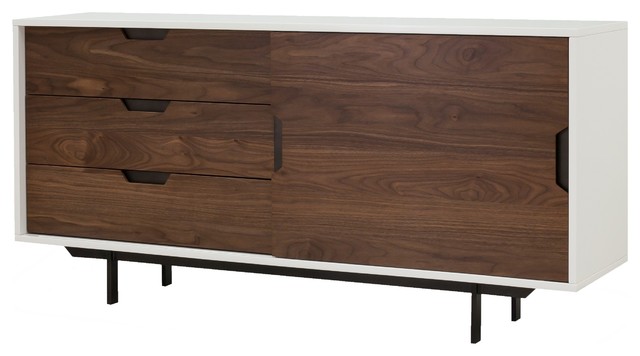 Mid Century Modern Console Cabinet With Sliding Door White Walnut Midcentury Entertainment Centers And Tv Stands By Zin Home