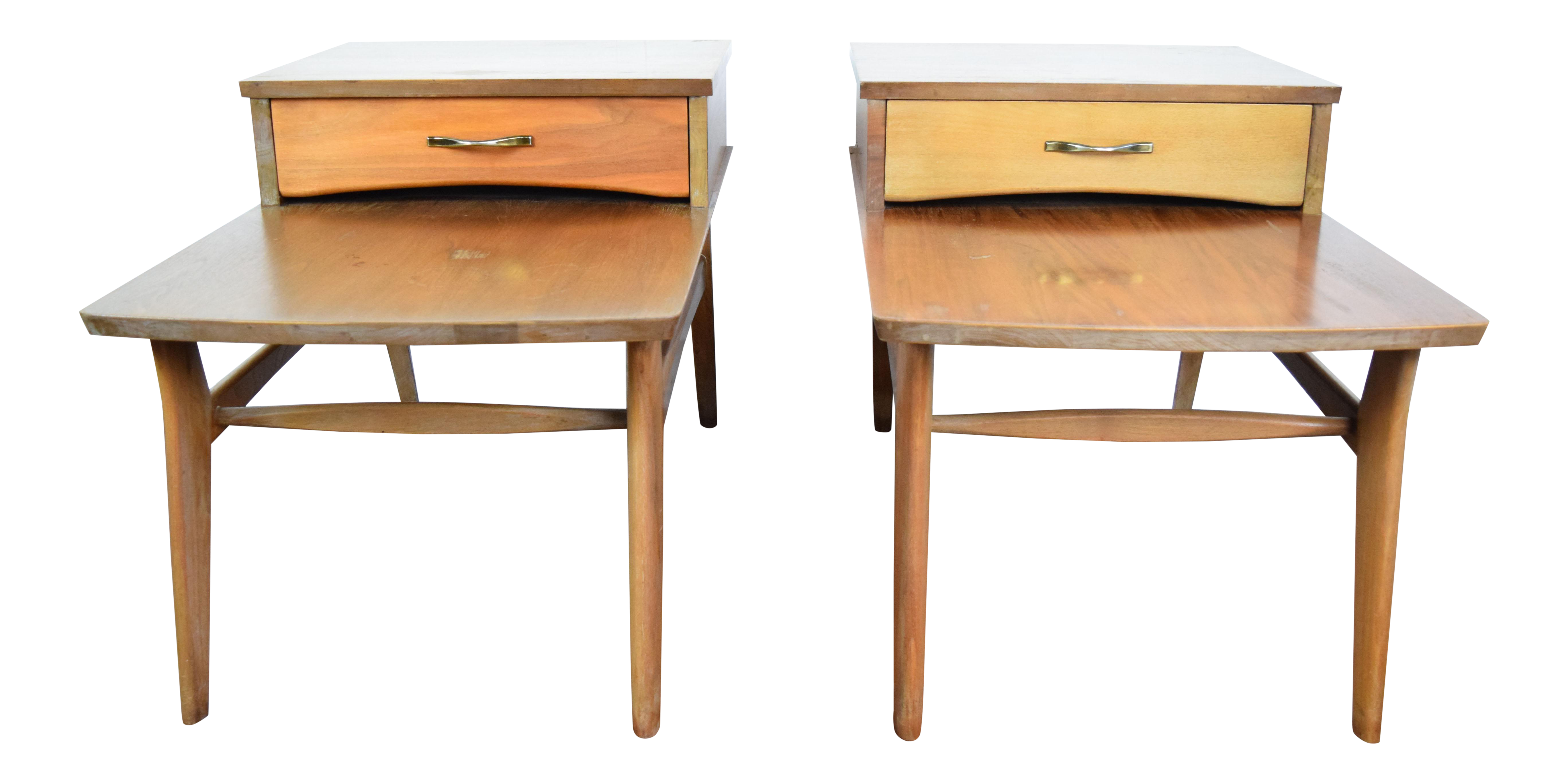 Lane Mid Century Modern Walnut Inlay Two Tier With Drawer End Tables A Pair Chairish