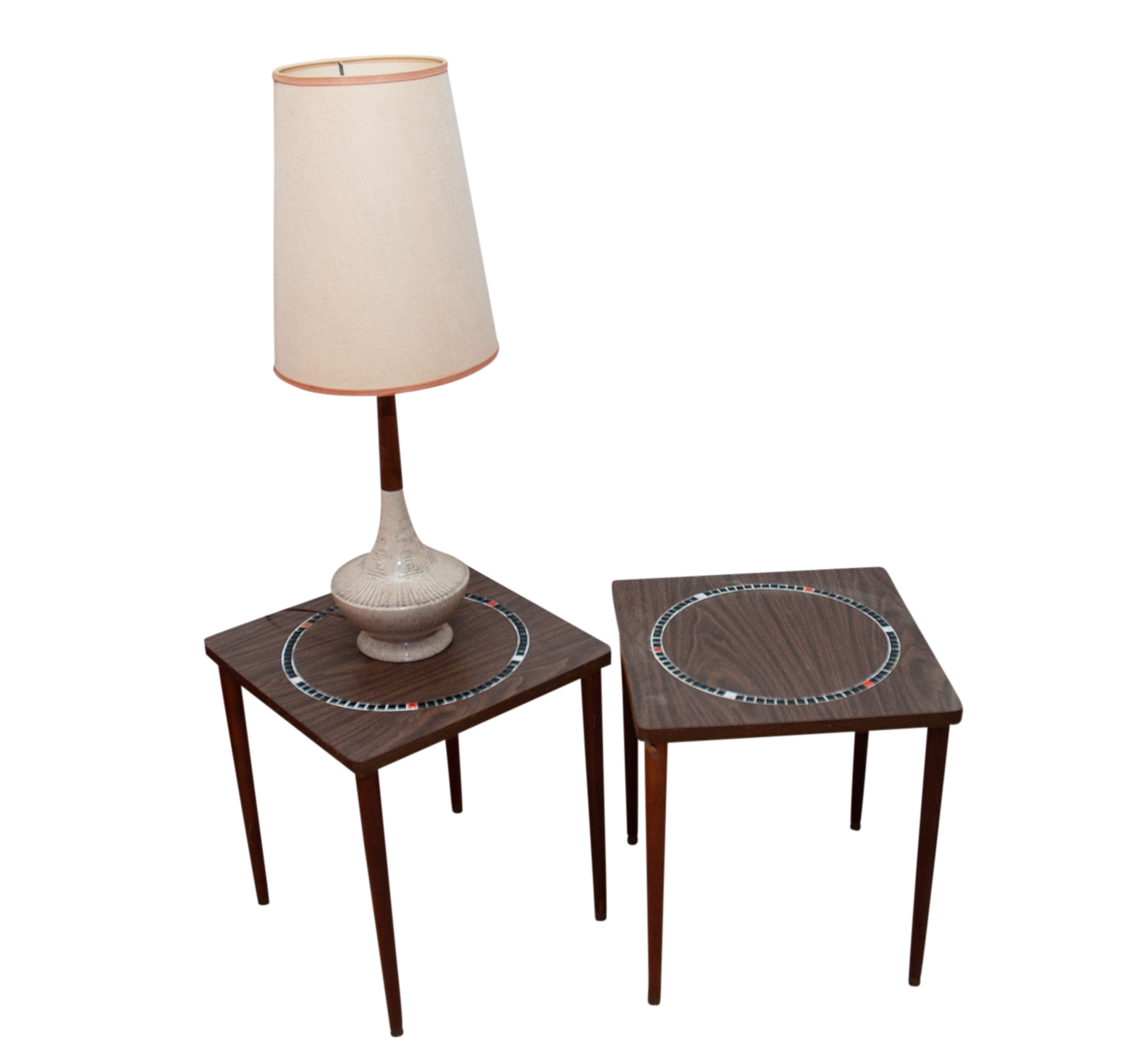 Vintage Martz Walnut Floor Lamp With Tile Side Table Mid Century