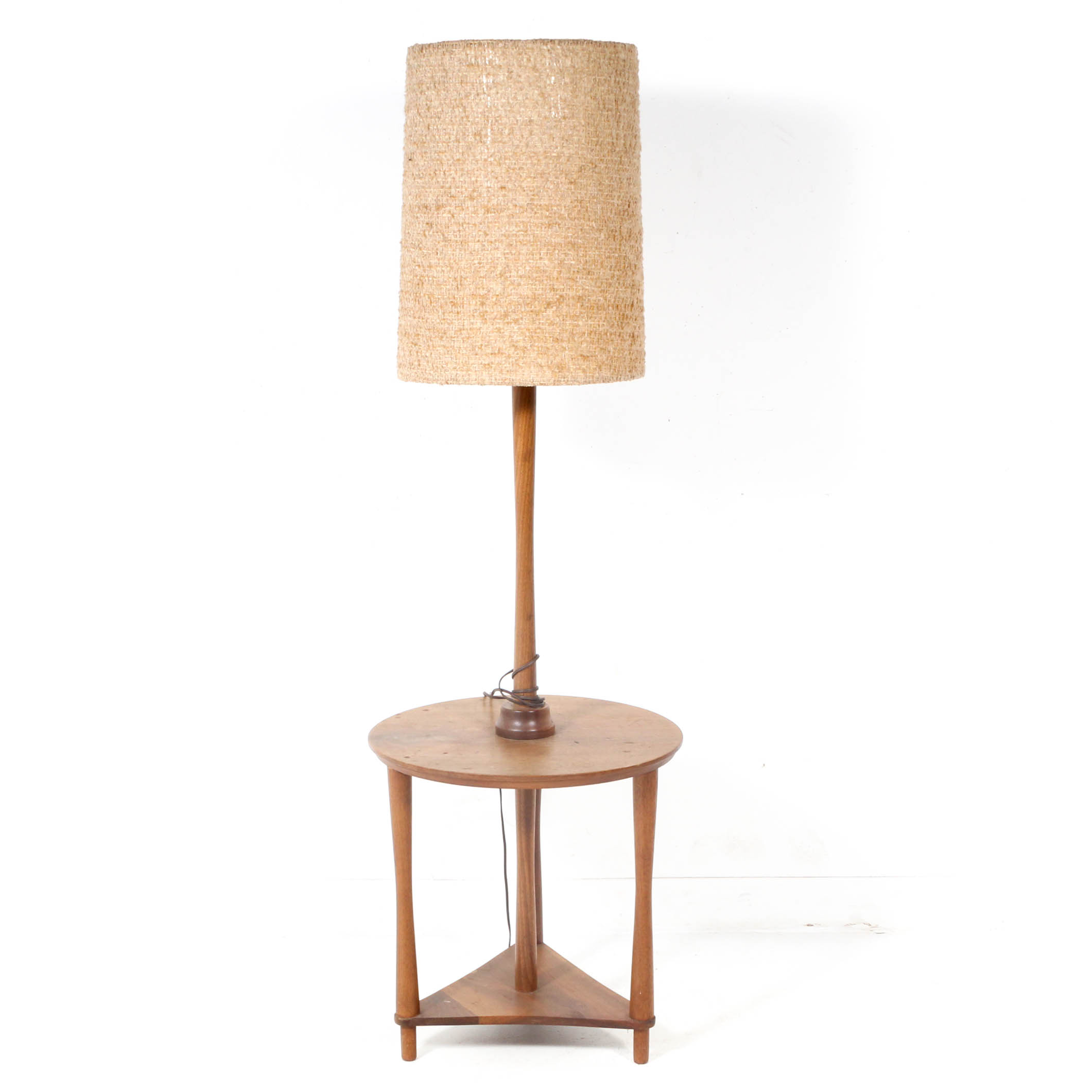 1950s Mid Century Modern Walnut Floor Lamp With Side Table Mid
