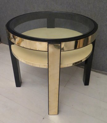 Round Mid Century Italian Goatskin Brass Glass Side Table