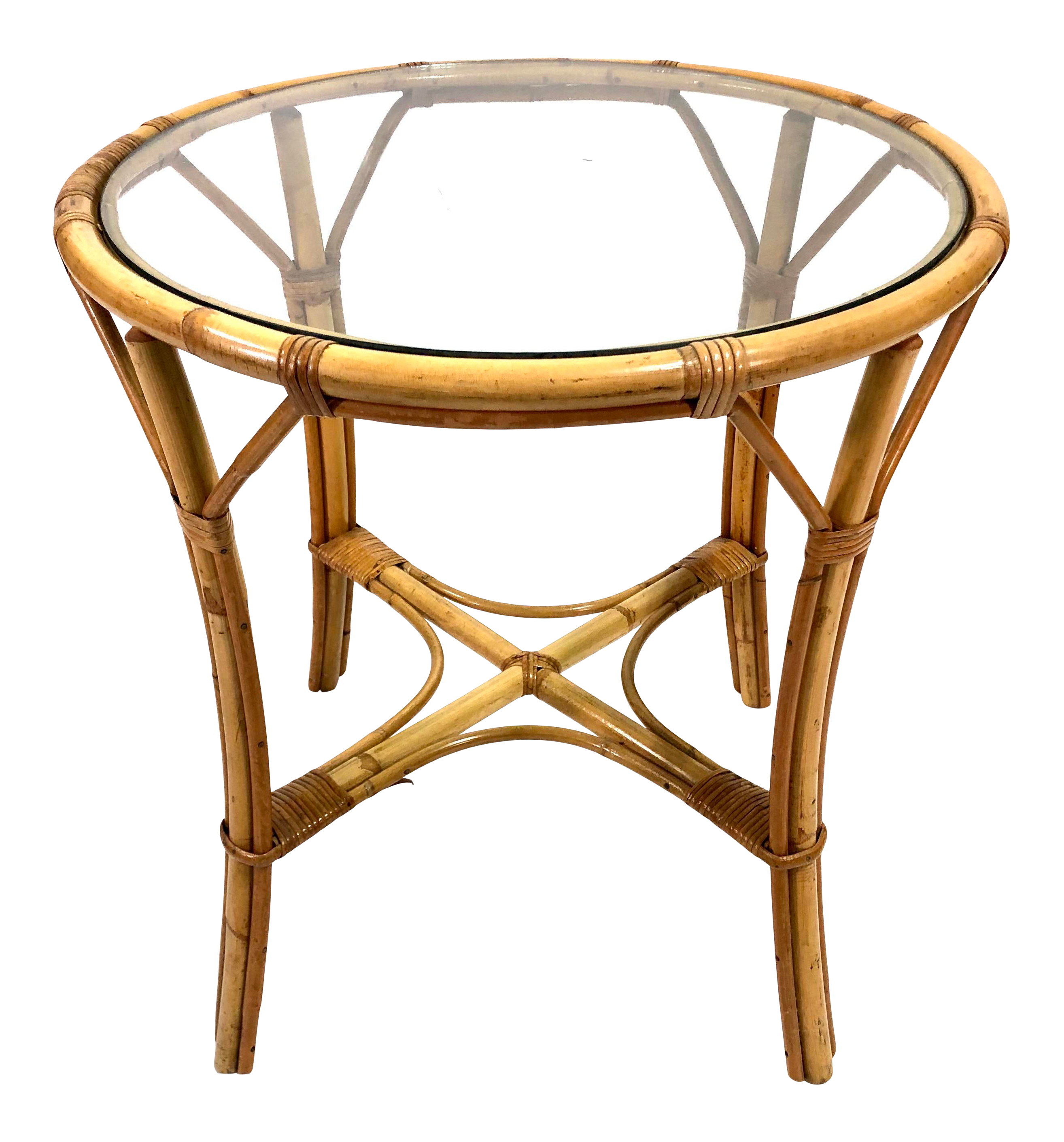 Mid Century Set Of Three Round Rattan Glass Side Tables 1960s