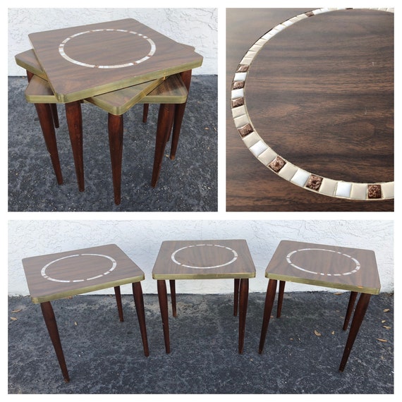 Mid Century Side Tables With Round Tile Inlay Etsy