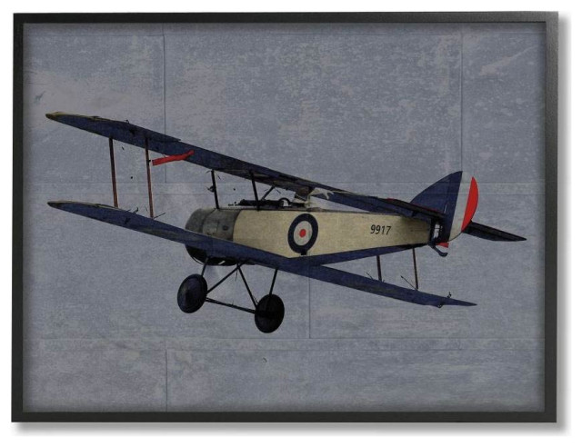 Stupell Industries Military Plane Blue Design Framed Art 16 In W