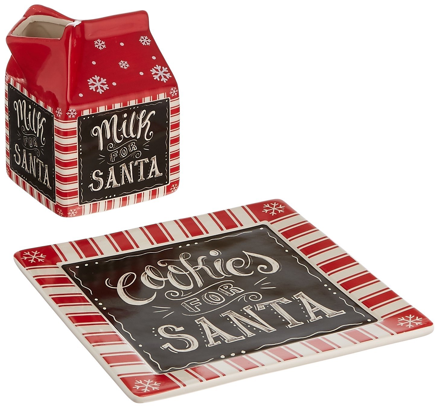 Burton And Burton Milk And Cookies For Santa Gift Set Ceramic Square Chalk Board Like Plate With Cookies For Santa Message And Red White Stripe Border Matching By Burton Burton Walmart Com