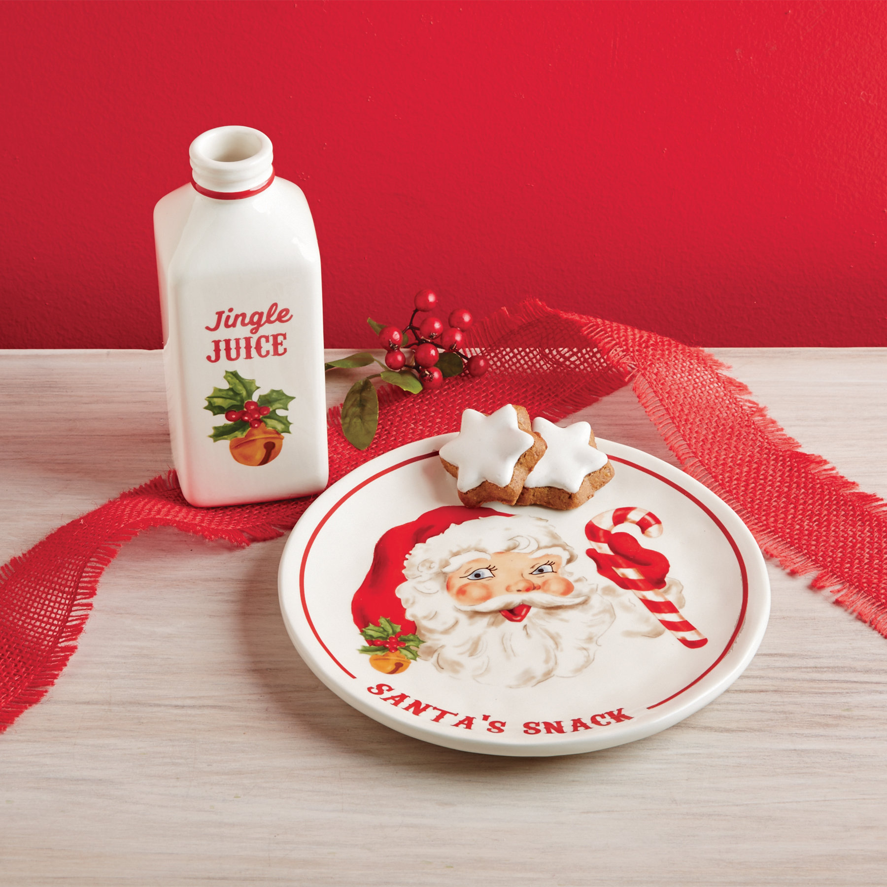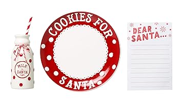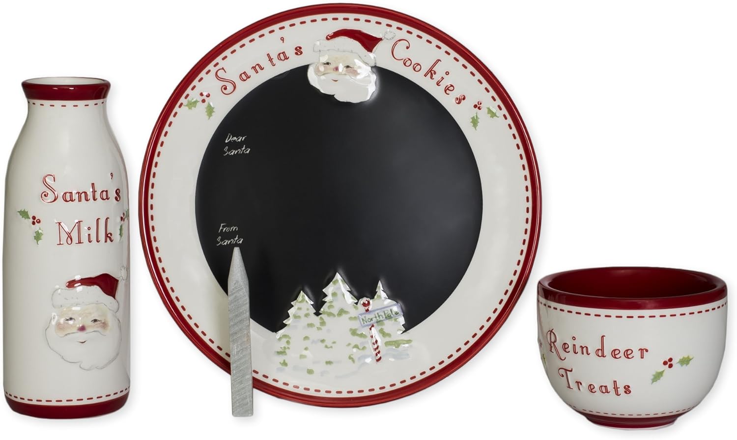 Amazon Com Child To Cherish Santa S Message Plate Set Santa Cookie Plate Santa Milk Jar And Reindeer Treat Bowl Christmas Decor Kitchen Dining