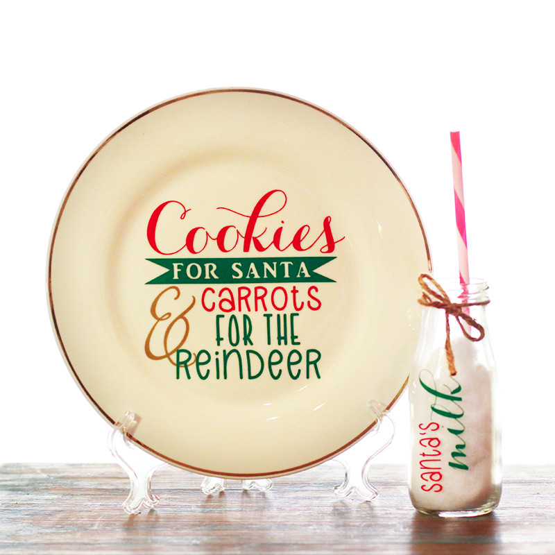 Santa Cookie Plate With Milk Glass Santa Plate Cookies For Santa Personalized Set Cookies For Santa Plate Christmas Vinyl Christmas Crafts
