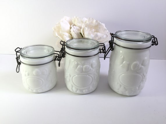 Set Of 3 Vintage Milk Glass Canisters Etsy