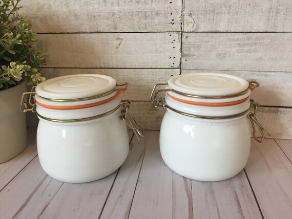 Anchor Hocking White Milk Glass Canister Set Pint Size 1 2 Etsy
