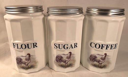 Set Of 3 White Milk Glass Canisters Flour 1 5l Sugar 1l Coffee 75