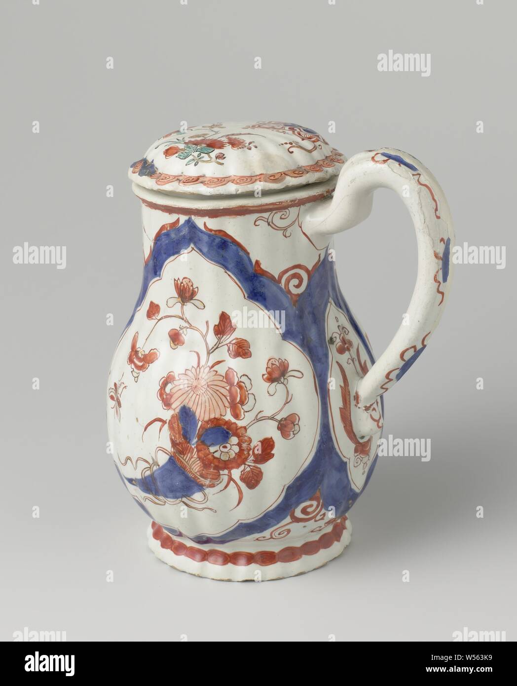 Milk Jug Of Ribbed Multi Colored Faience With Decor Of Horn Of