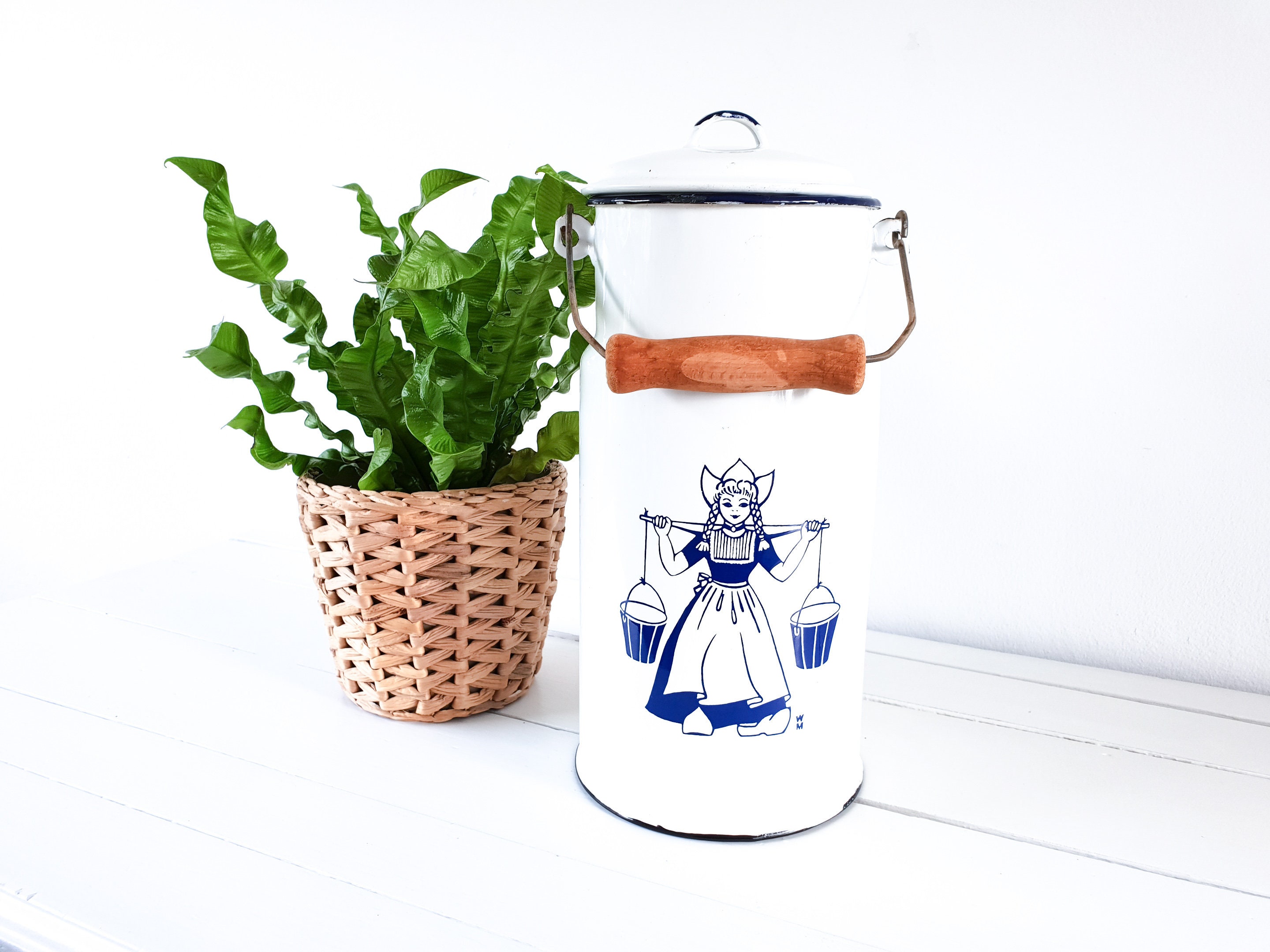 Vintage White Enamel Milk Can Milkmaid Vintage Milk Jug Country