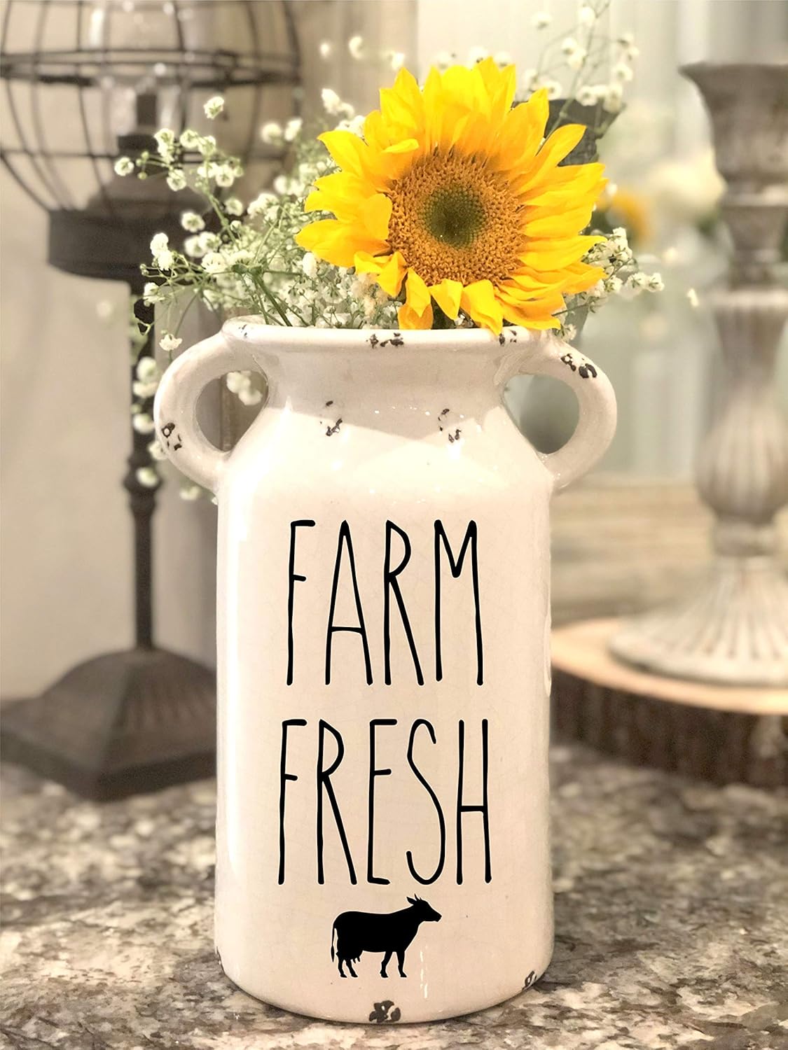 Farm Fresh Milk Jug Vase Decorative Accents Primitive Decor