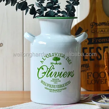 Enamel White Farm Fresh Milk Jug Decor Metal Black White Buy