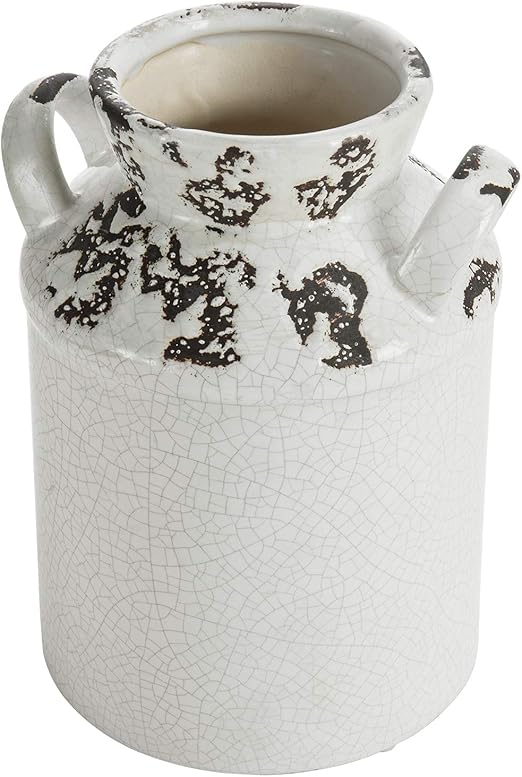 Amazon Com Mygift Antique Rustic White Ceramic Milk Jug Vase With