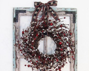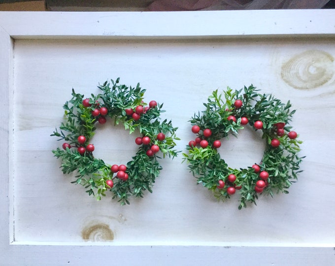 Mini Red Berry Wreath For Window Pane Or Window Farmhouse Mirror