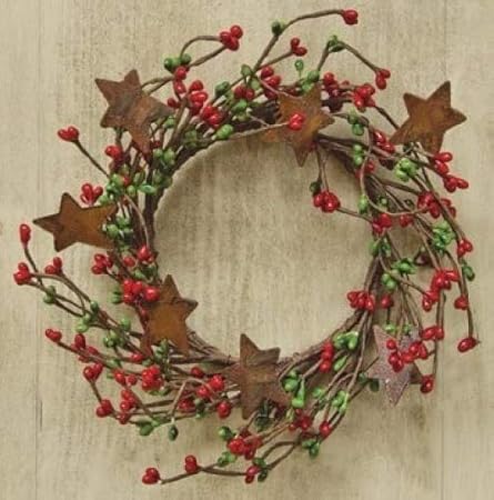 Red Green Pip Berry Ring Rusty Stars Mini Wreath Country