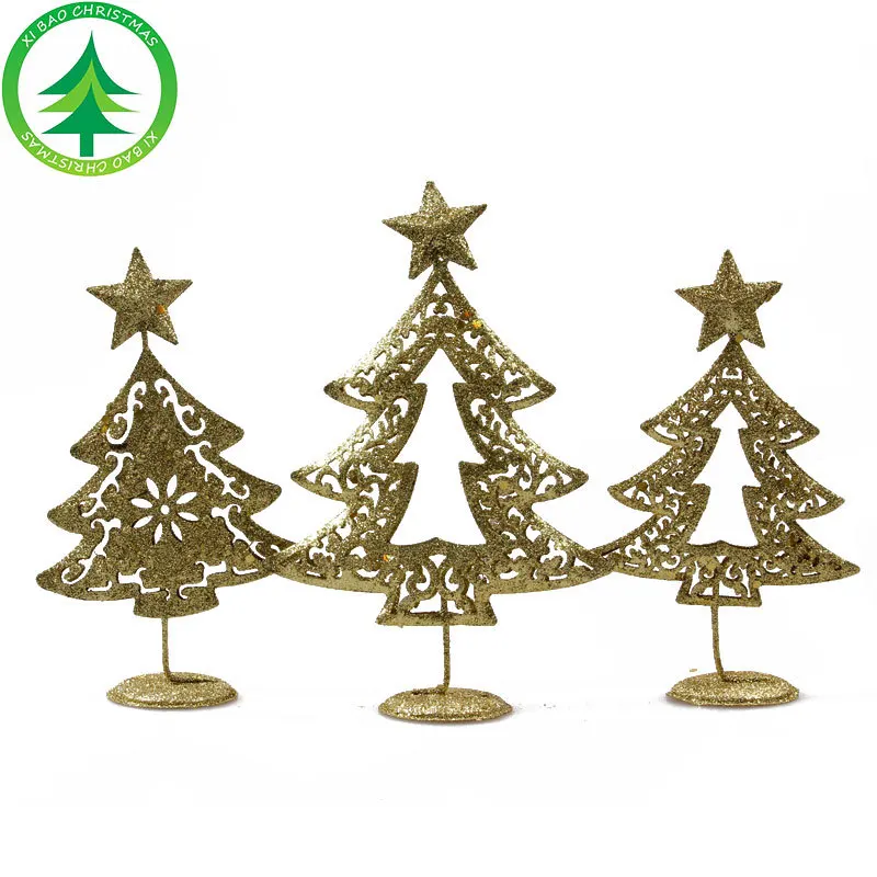 Silver Gold Mini Metal Christmas Tree Table Decoration Accessories