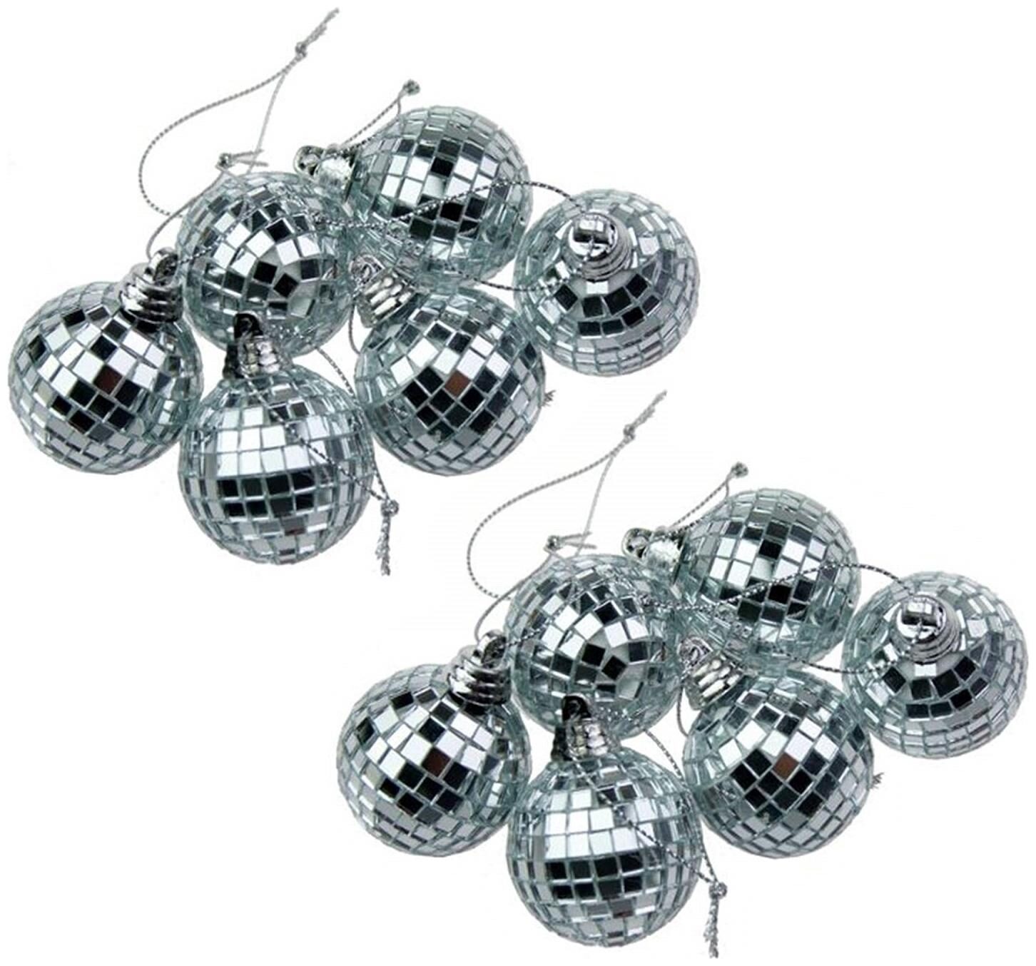 12 Silver Mini Disco Mirror Ball Christmas Tree Bauble Home Party