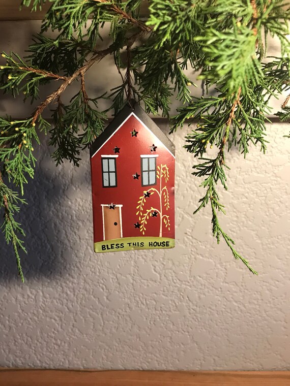 Miniature House Tree Ornament Metal Christmas Tree Ornament Etsy