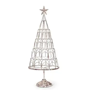 White Wash Desktop Christmas Tree Mini Metal Tabletop Xmas Tree