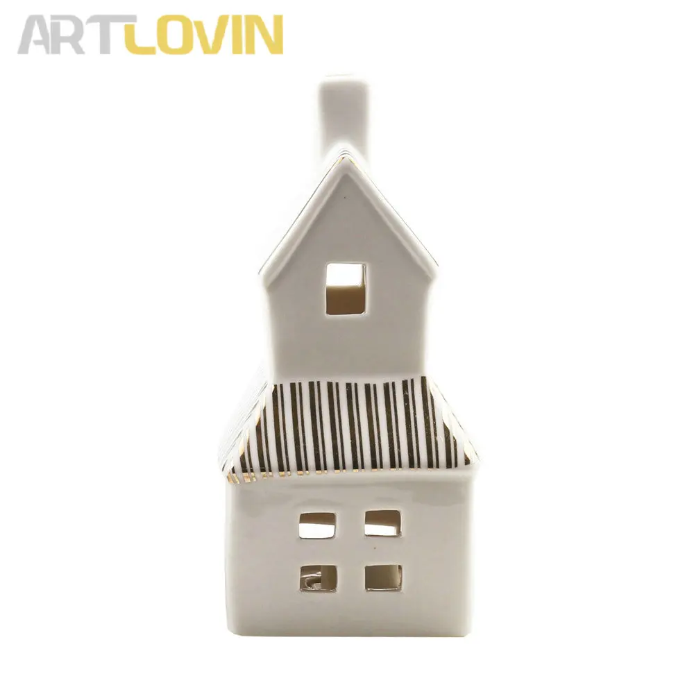 Mini House Miniature Cream White Ceramic House Figurines Gold