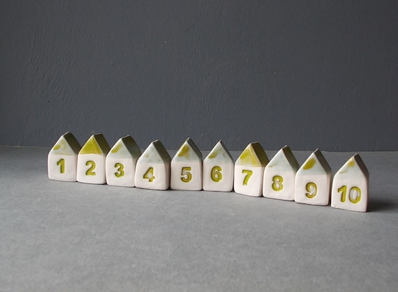 Miniature House Set Ceramic House Numbers Counting Houses Etsy