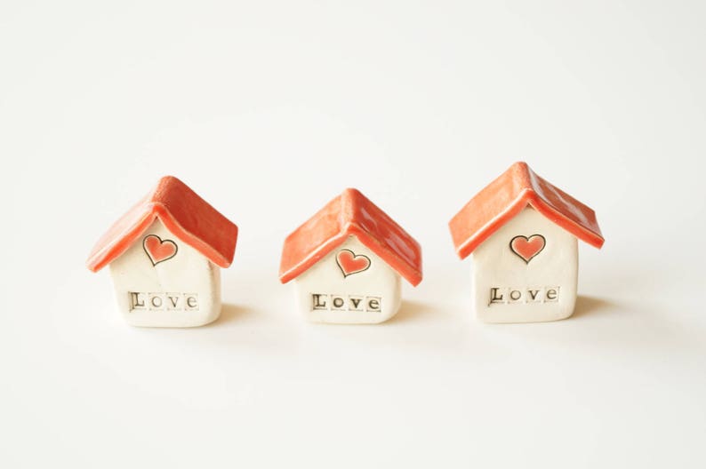 Three Mini Ceramic Houses Hand Built Small Homes Recycled Etsy