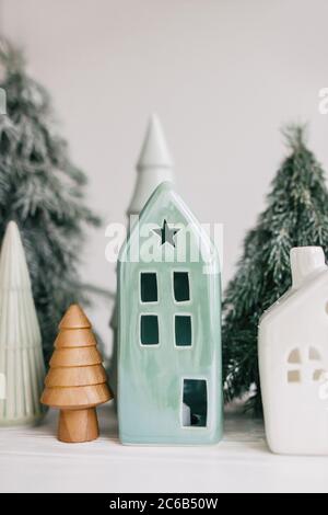 Christmas Holiday Background White Ceramic House Stock Photo Edit