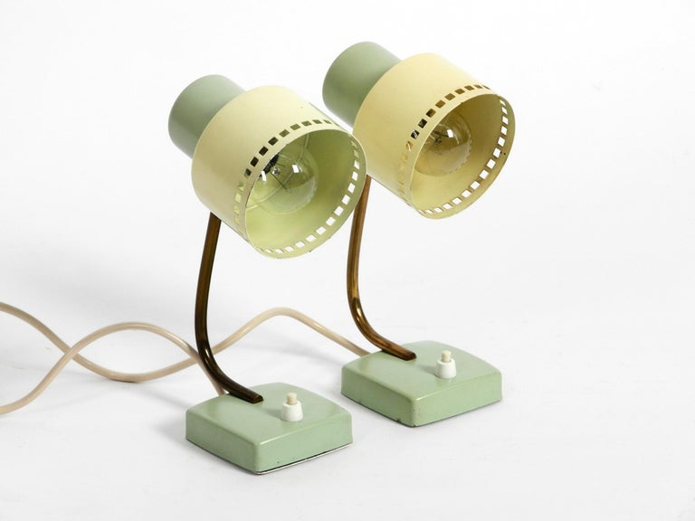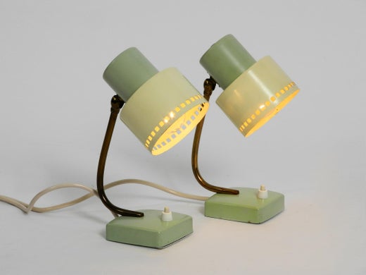 Pair Of Beautiful Midcentury Metal Bedside Lamps In Mint Green And