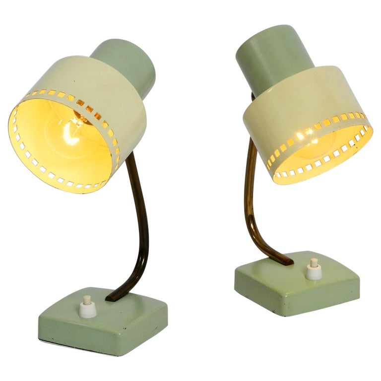 Pair Of Beautiful Mid Century Metal Bedside Lamps In Mint Green